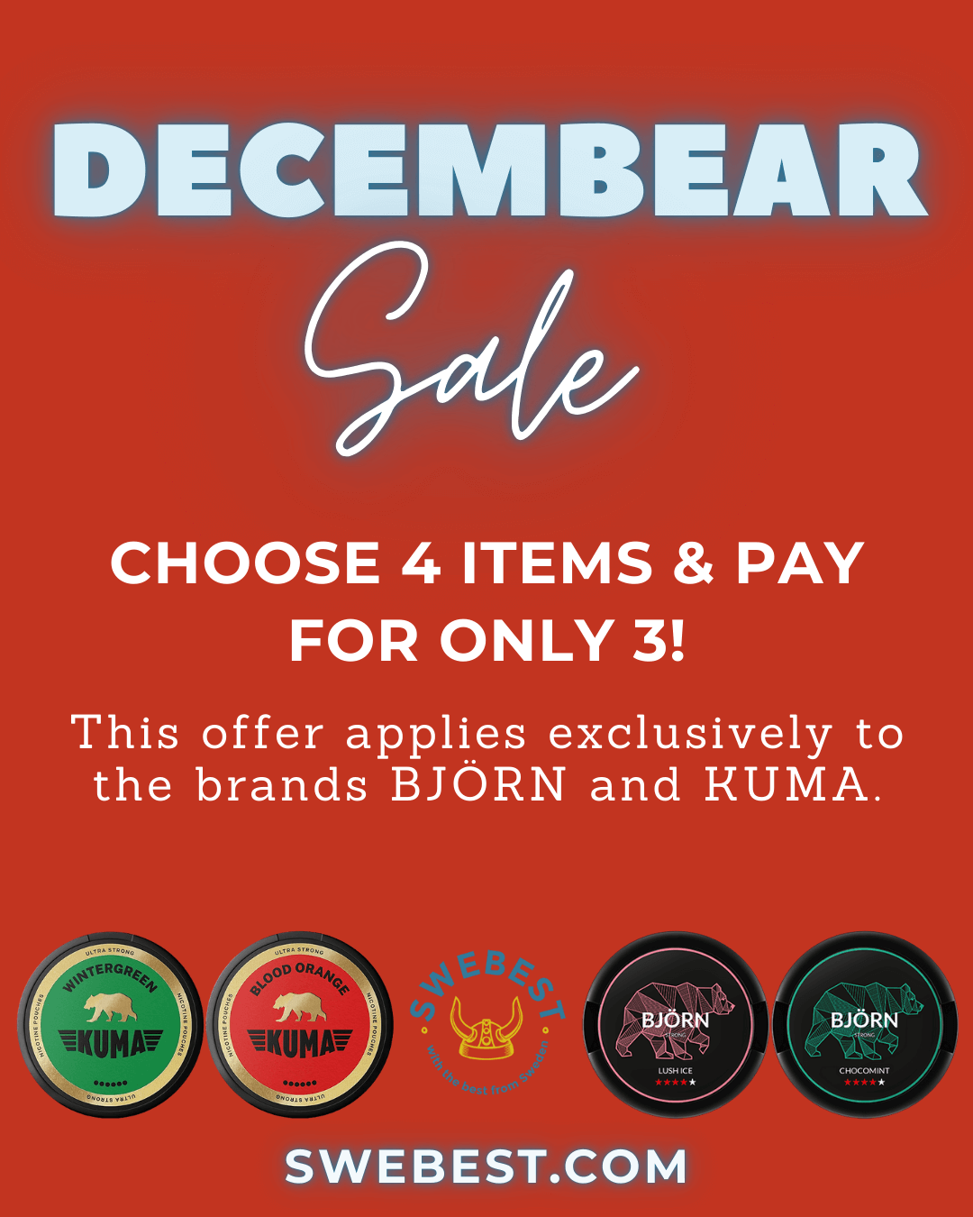 NO SALE OF SNUS OR NICOTINE PRODUCTS TO PERSONS BELOW 21 YEARS OLD!